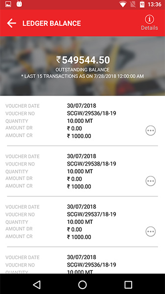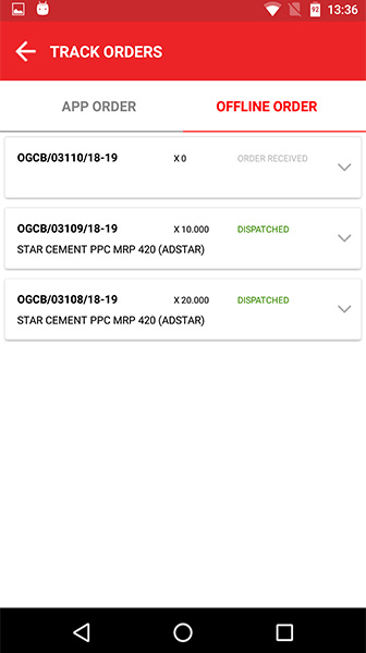 The Dealers can place the order for all products available at their location. They will be able to track both online (Order placed through App) and offline (Order placed through phone or mail) in their app. The Outstanding and Ledger up to last fifteen entries will be available. They will be able to view their performance and compare their present sales with previous year’s sale.